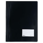 Durable snelhechter semi transparant 268001. Hoogwaardige snelhechter voor formaat A4 extra breed. Ook geschikt voor het hechten van showtassen. Gekleurde semitransparante voor- en achterzijde met kunststof overtrokken hecht mechanisme. Met etiketvenster in visitekaartformaat 90 x 57 mm op de voorzijde en binnentas op de achterzijde. Formaat: A4. Kleur: zwart.