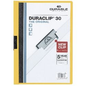Durable klemmappen duraclip 30. De klemmappen zijn vervaardigd uit ultrasterke kunststof en zijn voorzien van een metalen schuifklem in de rug en u heeft daarop 5 jaar garantie. De capaciteit van de map is 3 mm is tot 30 vel. Formaat: A4. Afmetingen (B x H): 22,5 x 31,0 cm. Kleur: geel. Pak: 25 stuks.