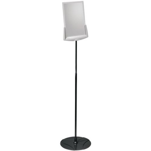 • In hoogte verstelbare verkoopstandaard op voet met mededelingenpaneel van acryl voor A4-documenten