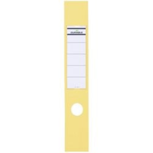 Durable zelfklevende ruginsteeketiket. Gemaakt van plastic folie. Met bedrukking, gat en vervangbare insteeketiketten van 135 gsm karton. Formaat: lang, breed. Kleur: geel. Hoeveelheid: 10 stuks.