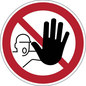Zelfklevend pictogram voor vloermarkering, Materiaal: PVC, Lengte: 435 mm, Breedte: 435 mm, Kleur: Rood, Paneel vorm: Rond, Ø: 430 mm, Type bord: Gevaar, Zelfklevend: ja, Stijf: nee, Special Covid-19: nee, Recyclebare verpakking: Ja - 100%, Opdruk: Geen ingang