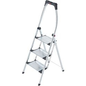 Hailo huishoudtrap Comfort Plus 3 treden. Treden: 3 extra grote, anti-slip aluminium treden met ribbels voor optimaal sta comfort. Werkhoogte: max 2.50 m. Belastbaar tot 150 kg. Materiaal: aluminium. Kleur: zilver. Gewicht: 7,3 kg.