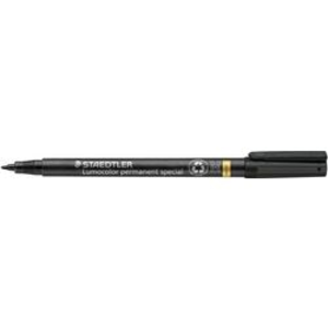 STAEDTLER Speciale marker Medium. Cap-Off: nee. Clip: ja. Kleur Behuizing: zwart. Kleur: zwart. Diepte: 9 mm. Uitwisbaar: nee. Hoogte: 141 mm. Bij de levering inbegrepen: 1 x pen. Inktkleur: zwart. Inkttype: inkt op alcoholbasis. Lijndikte: 1. Type penpunt: rond. Penpunt Breedte: medium. Productlijn: Lumocolor. Product Type: permanent marker. Navulbaar: nee. Intrekbaar: nee. Slagbreedte (Maximum): 1,0 mm. Geschikt voor linkshandigen: ja. Gewicht: 8,1. Breedte: 9 mm.