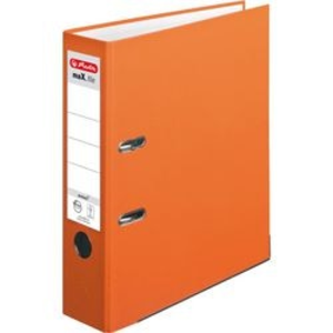 herlitz Ordner. 1. Verkoopeenheid - meervoud: Stuks. Aantal vellen: 600 Vellen. Basis productkleur: Oranje. Diepte: 285 mm. Etiketruimte: Ja. Fabrikantnummer: 10556470. Gerecycled: 65.46 %. Gerecycled karton: 61.59 %. Gewicht: 460 g. Grijpgat: Ja. Hoogte: 318 mm. Inclusief: 1 x ordner. Kleur: Oranje. Materiaal: Karton, PP (Polypropeen). Merk: herlitz. Oppervlak: Reliëf. Product Type: Ordner. Productlijn: maX.file protect. Producttype: Ordner. Ringen: 2 ringen. Rugbreedte: 80 mm. Sluitmechanisme ordner: D. Staand of liggend: Staand.