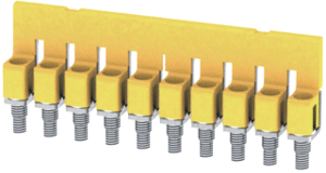 Weidmüller WQV doorverbindingsbrug rijgklem, geel, schroefbaar, uitvoering dwarsverbinder, rastermaat 6.1mm, 10 overbrugde klemmen, nom. (meet-)stroom In 41A, geïsoleerd, met aanraakbeveiliging, t.b.v. WDU 4
