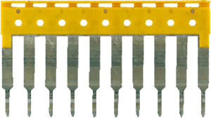 Weidmüller ZQV doorverbindingsbrug rijgklem, geel, steekbaar, uitvoering dwarsverbinder, rastermaat 5.1mm, 10 overbrugde klemmen, nom. (meet-)stroom In 24A, explosiegeteste uitvoering Ex-e, geïsoleerd, met aanraakbeveiliging, t.b.v. ZDU 2.5