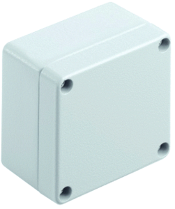 Weidmüller schakelkast leeg, aluminium, grijs, (hxbxd) 70x70x45mm, geschikt voor buitenopstelling, beschermingsgraad (IP) IP66, kwaliteit overig, koppelbaar, slagvastheid IK09, warmteverlies-vermogen (?T=20K) vol 6W, beschermingsgraad (NEMA) 4, uitvoering oppervlakte poedercoating