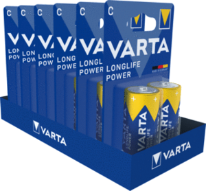 Varta Longlife Power batterij, niet oplaadbaar alkaline, diameter 26.2mm, lengte 50mm, nom. spanning 1.5V, grootte aanduiding baby, hoogte incl. pool 50mm, capaciteit 7800mAh, IEC-aanduiding LR 14, 1 cellen, gewicht 65.8g