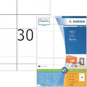 Zelfklevende etiketten op A4-vellen, permanent hechtend. Perfect voor alle laser- en inkjetprinters, kopieerapparaten, kleurenlaserprinters en kleurenkopieerapparaten. Gegarandeerd storingvrije loop en geschikt voor high-speed dankzij extra sterke speciale materiaalsamenstelling, top-vlakligging en een veiligheidsrand rondom. Probleemloze doorvoer door de printer voor laserprinters en inkjetprinters getest en bevestigd door de TÜV SÜD. Hoge witheidsgraad en gelijkmatig oppervlak voor de beste afdrukresultaten in zwart/wit en kleur. Voelbaar dikker: extra dikke etiketten - eenvoudig opplakken. Zeer snel en goed hechtend, ook op koude en vochtige oppervlakken. Milieuvriendelijk en duurzaam: chloorvrij gebleekt, PEFC-gecertificeerd, oplosmiddelvrije contactlijm. Etiketten zijn 100 % recyclebaar via het oud papier, verpakking van gerecycled karton. Gratis softwareoplossingen: www.herma.com/software.