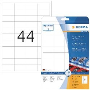 Witte mate folie-etiketten op A4-vellen, zelfklevend. Ideaal voor etiketten op zwaar belaste plaatsen en buiten: eigendomsetiketten, etalagestickers, attentie- en waarschuwingsplaatjes, labelen in het magazijn en in de productie. Slijt- en weervast oppervlak, zeer sterk hechtend, verouderingsbestendig, olie en vuil afstotend, afwasbaar, temperatuurbestendig van -30 tot 80 °C, zeewaterbestendig. Storingvrije verwerking dankzij veiligheidsrand rondom en optimale vlakligging. Voor laserprinters en kopieerapparaten, kleurenlaserprinters en kleurenkopieerapparaten. Niet geschikt voor inkjetprinters. Gratis softwareoplossingen: www.herma.com/software.