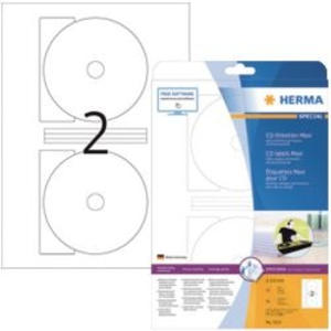 CD-etiketten van papier, op A4-vellen, zelfklevend. Absoluut ondoorzichtig materiaal met een hoge witheidsgraad, CD-opdrukken schijnen niet door. Eenvoudig exact in het midden opplakken dankzij positioneerhulp aan elk etiket. Goede hechting, ook in high-speed-stations. Milieuvriendelijk: hoogwaardig, chloorvrij gebleekt speciaal papier, PEFC-gecertificeerd, oplosmiddelvrije contactlijm, verpakking van gerecycled karton. Zeer goede drukresultaten op alle laser- en inkjetprinters, kopieerapparaten, kleurenlaserprinters en kleurenkopieerapparaten. Storingvrije verwerking dankzij veiligheidsrand rondom en optimale vlakligging. Gratis softwareoplossingen: www.herma.com/software.