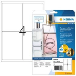Transparante glasheldere folie-etiketten op A4-vellen, zelfklevend. Hoogglanzend, perfect voor optisch hoogwaardige toepassingen. Ideaal op glas en glanzende oppervlakken, plastic, metaal en een gekleurde ondergrond. Als hoogwaardig productetiket, voor representatieve documenten en cadeaudoosjes, voor het labelen van kantoorbenodigdheden, als etalagestickers en als deurplaatje, of voor het adresseren. No-label-effect: opschrift lijkt direct opgedrukt. Weervast, verouderingsbestendig, olie en vuil afstotend, afwasbaar. Storingvrije verwerking dankzij veiligheidsrand rondom en optimale vlakligging. Voor laserprinters en kopieerapparaten, kleurenlaserprinters en kleurenkopieerapparaten. Niet geschikt voor inkjetprinters. Gratis softwareoplossingen: www.herma.com/software.