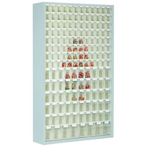 Opbergkast Stala STH, Materiaal: Staal, Totale hoogte: 2000 mm, Totale breedte: 1270 mm, Totale diepte: 285 mm, Max. belasting: 102 kg, Frame kleur: Grijs, Lade kleur: Transparant, Aantal laden: 154, RAL: 7035, Geleverd gemonteerd: ja, Materiaal bakken: Polystyreen, Max. belasting per legbord: 120 kg, Lean Management: ja, Gewicht: 145 kg, Type lade: Ladehoogte type 6: hoogte 130 mm, type 5, Type: Hoge kast, Materiaal kast: Staal