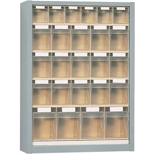 Voorraadkast Stala STM, Materiaal: Staal, Totale hoogte: 910 mm, Totale breedte: 670 mm, Totale diepte: 250 mm, Max. belasting: 28 kg, Frame kleur: Grijs, Lade kleur: Transparant, Aantal bakken: 25, Aantal laden: 25, RAL: 7035, Geleverd gemonteerd: ja, Materiaal bakken: Polystyreen, Max. belasting per legbord: 40 kg, Lean Management: ja, Type: Lage kast, Materiaal kast: Staal