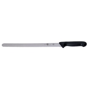 Ook voor desserts. Gekarteld lemmet. Gegoten heft. Dit mes is gemaakt in Duitsland door de firma Giesser Messer, mesfabrikanten sinds 1865, en is een toonbeeld van traditie en kwaliteit. Lemmet van vacuüm-gehard staal, voor nog betere snijprestaties. Hoge kwaliteit chroom/molybdeenstaal. Met anti-slip handgreep, niet-poreus en steriliseerbaar. Het speciaal gevormde heft zorgt voor comfortabel gebruiksgemak. Wordt geleverd in kunststof houder. De aangegeven lengte is die van het lemmet