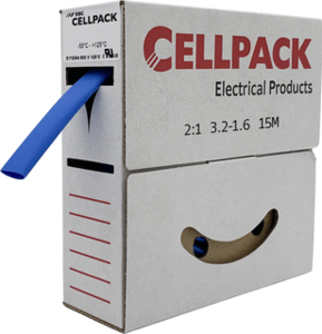 Cellpack SB krimpslang dunwandig, polyolefine (PO-X), blauw, lengte 15000mm, type warmkrimp, binnendiameter voor inkrimping 3.2mm, binnendiameter na inkrimping 1.6mm, krimpinterval 2:1, kabeldiameter 1.6 - 3.2mm, bedrijfstemperatuur -55 - +135°C, wanddikte na krimpen 0.51mm, bedrukbaar,