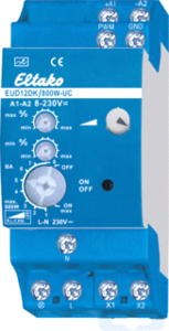 Eltako 12- dimmer, blauw, bedieningswijze tiptoets, type belasting universeel, opgenomen vermogen 800W, samenstelling overig, dimbaar faseafsnijding, DRA (DIN-rail adapter), dimbaar faseaansnijding, geschikt voor toepassing met drukke, nom. spanning 230V, max. schakelvermogen LED 800W,