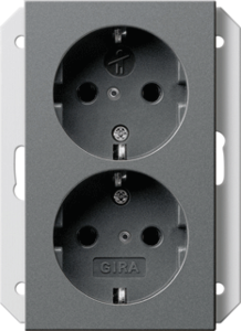 Gira Systeem 55 wandcontactdoos (wcd schakelmat.), antraciet, uitvoering contactdoos CEE 7/3 (type, aardcontact overig, 2 eenheden, 1 modules (bij modulair sys, aansluitwijze overig, met verhoogde aanraakbeveiliging