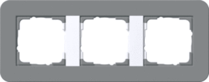 Gira E3 afdekraam schakelmateriaal, kunststof, grijs, (bxhxd) 133x91.56x9.77mm, variant donkergrijs/zuiver wit, montagerichting horizontaal en verticaal, 3 eenheden, beschermingsgraad (IP) IP20, 3 eenheden horizontaal, RAL-nummer 7035, kwaliteit thermoplast, 1 modules horizontaal (bij,