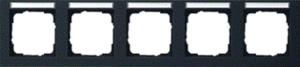 Gira E2 afdekraam schakelmateriaal, kunststof, zwart, (bxhxd) 365x80.8x9.5mm, uitvoering oppervlakte mat, montagerichting horizontaal, geschikt voor wandgoot, tekstveld/beschrijvingsvlak, 5 eenheden, beschermingsgraad (IP) IP20, 5 eenheden horizontaal, RAL-nummer 9001, kwaliteit thermoplast,