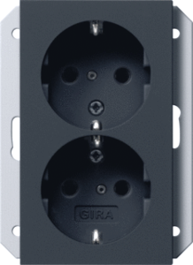 Gira Systeem 55 wandcontactdoos (wcd schakelmat.), zwart, uitvoering contactdoos CEE 7/3 (type, aardcontact overig, 2 eenheden, 1 modules (bij modulair sys, aansluitwijze overig, met verhoogde aanraakbeveiliging
