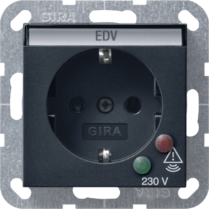 Gira Systeem 55 wandcontactdoos (wcd schakelmat.), zwart, uitvoering contactdoos CEE 7/3 (type, aardcontact overig, met signaallamp, 1 eenheid, 1 modules (bij modulair sys, opdruk/indicatie computervoeding, aansluitwijze steekklem, tekstveld/beschrijvingsvlak, met functieverlichting,