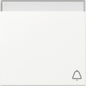 Gira bed.element / centr.pl. schakelmat., kunststof, wit, uitvoering enkele wip, gebruik schakelaar/drukker, uitvoering oppervlakte mat, opdruk/indicatie symbool"bel", beschermingsgraad (IP) IP20, RAL-nummer 9010, met indicatieveld, kwaliteit thermoplast, oppervlaktebescherming overig