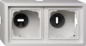 Gira F100 opbouwbak inbouwschakelmateriaal, kunststof, wit, samenstelling opbouwbak, montagerichting horizontaal en verticaal, beschermingsgraad (IP) IP20, 2 eenheden, met kabelinvoer, met afdekraam, uitvoering oppervlakte glanzend, met kanaalinvoering, slagvast, vierkant, kwaliteit thermoplast,