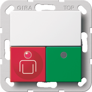 Gira 834 Systeem 55 miva schakelmateriaal, uitvoering oproep-/aanw.combinatie, inbouw (U40) inbouwdoos, incl. geruststellampje LED, bedieningsknop rood/groen, variant afdekplaat zuiver wit
