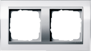 Gira Event Clear afdekraam schakelmateriaal, kunststof, wit, (bxhxd) 160x98.9x11.1mm, uitvoering oppervlakte glanzend, variant aluminium/zuiver wit, montagerichting horizontaal en verticaal, geschikt voor wandgoot, 2 eenheden, beschermingsgraad (IP) IP20, 2 eenheden horizontaal, RAL-nummer 9010,