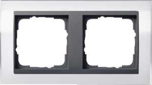 Gira Event Clear afdekraam schakelmateriaal, kunststof, wit, (bxhxd) 160x98.9x11.1mm, uitvoering oppervlakte glanzend, variant antraciet/wit, montagerichting horizontaal en verticaal, geschikt voor wandgoot, 2 eenheden, beschermingsgraad (IP) IP20, 2 eenheden horizontaal, RAL-nummer 9010,