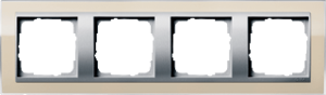 Gira Event Clear afdekraam schakelmateriaal, kunststof, beige, (bxhxd) 303x89.88x11.29mm, uitvoering oppervlakte glanzend, variant aluminium/zand, montagerichting horizontaal en verticaal, geschikt voor wandgoot, 4 eenheden, beschermingsgraad (IP) IP20, 4 eenheden horizontaal, kwaliteit thermoplast,