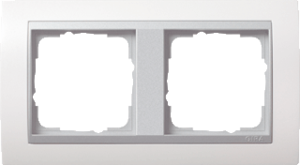 Gira Event afdekraam schakelmateriaal, kunststof, wit, (bxhxd) 161x90.11x11.18mm, uitvoering oppervlakte glanzend, variant aluminium/zuiver wit, montagerichting horizontaal en verticaal, geschikt voor wandgoot, 2 eenheden, beschermingsgraad (IP) IP20, 2 eenheden horizontaal, RAL-nummer 9010,