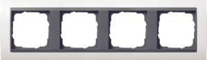 Gira Event afdekraam schakelmateriaal, kunststof, wit, (bxhxd) 303x89.77x11.29mm, uitvoering oppervlakte glanzend, variant antraciet/zuiver wit, montagerichting horizontaal en verticaal, geschikt voor wandgoot, 4 eenheden, beschermingsgraad (IP) IP20, 4 eenheden horizontaal, RAL-nummer 9010,