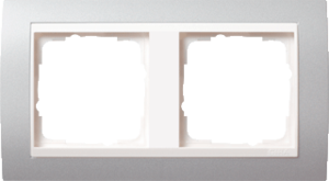 Gira Event afdekraam schakelmateriaal, kunststof, aluminium, (bxhxd) 160x89.85x11.13mm, uitvoering oppervlakte glanzend, variant zuiver wit/aluminium, montagerichting horizontaal en verticaal, geschikt voor wandgoot, 2 eenheden, beschermingsgraad (IP) IP20, 2 eenheden horizontaal,