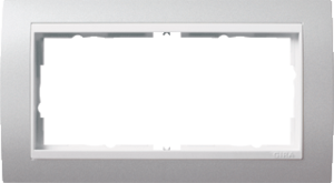 Gira Event afdekraam schakelmateriaal, kunststof, aluminium, (bxhxd) 160.5x89.6x11.29mm, uitvoering oppervlakte glanzend, variant zuiver wit/aluminium, montagerichting horizontaal en verticaal, geschikt voor wandgoot, 2 eenheden, beschermingsgraad (IP) IP20, 2 eenheden horizontaal,