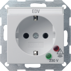 Gira Systeem 55 wandcontactdoos (wcd schakelmat.), grijs, uitvoering contactdoos CEE 7/3 (type, aardcontact overig, met signaallamp, 1 eenheid, 1 modules (bij modulair sys, opdruk/indicatie computervoeding, aansluitwijze steekklem, tekstveld/beschrijvingsvlak, met functieverlichting,