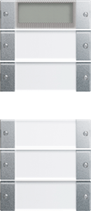 Gira Systeem 55 bed.element / centr.pl. schakelmat., kunststof, aluminium, uitvoering 5-delige drukker, gebruik tastsensor, uitvoering oppervlakte mat, beschermingsgraad (IP) IP20, geschikt voor bussysteem-toetsaansl, halogeenvrij, kwaliteit thermoplast, oppervlaktebescherming geen (onbehandeld),