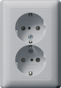 Gira Systeem 55 wandcontactdoos (wcd schakelmat.), grijs, uitvoering contactdoos CEE 7/3 (type, aardcontact overig, 2 eenheden, 1 modules (bij modulair sys, aansluitwijze steekklem, met verhoogde aanraakbeveiliging