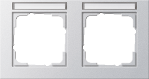 Gira E2 afdekraam schakelmateriaal, kunststof, aluminium, (bxhxd) 151x80.32x9.5mm, montagerichting horizontaal, geschikt voor wandgoot, tekstveld/beschrijvingsvlak, 2 eenheden, beschermingsgraad (IP) IP20, 2 eenheden horizontaal, kwaliteit thermoplast, 2 eenheden verticaal, halogeenvrij,