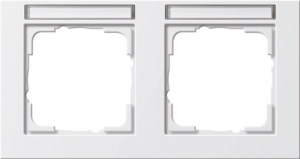 Gira E2 afdekraam schakelmateriaal, kunststof, wit, (bxhxd) 151x80.32x9.5mm, uitvoering oppervlakte glanzend, variant zuiver wit, montagerichting horizontaal, geschikt voor wandgoot, tekstveld/beschrijvingsvlak, 2 eenheden, beschermingsgraad (IP) IP20, 2 eenheden horizontaal, RAL-nummer 9010,