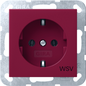 Gira Systeem 55 wandcontactdoos (wcd schakelmat.), rood, uitvoering contactdoos CEE 7/3 (type, aardcontact overig, 1 eenheid, 1 modules (bij modulair sys, 1 fasen, opdruk/indicatie WSV, aansluitwijze steekklem