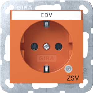 Gira Systeem 55 wandcontactdoos (wcd schakelmat.), oranje, uitvoering contactdoos CEE 7/3 (type, aardcontact overig, met signaallamp, 1 eenheid, 1 modules (bij modulair sys, 1 fasen, opdruk/indicatie ZSV, aansluitwijze schroefklem, tekstveld/beschrijvingsvlak, met functieverlichting
