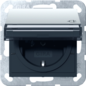 Gira Systeem 55 wandcontactdoos (wcd schakelmat.), roestvaststaal (RVS), uitvoering contactdoos CEE 7/3 (type, aardcontact overig, 1 eenheid, 1 modules (bij modulair sys, 2 fasen, aansluitwijze steekklem, met klapdeksel, tekstveld/beschrijvingsvlak, RAL-nummer 7035