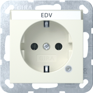 Gira Systeem 55 wandcontactdoos (wcd schakelmat.), wit, uitvoering contactdoos CEE 7/3 (type, aardcontact overig, met signaallamp, 1 eenheid, 1 modules (bij modulair sys, 2 fasen, opdruk/indicatie computervoeding, aansluitwijze steekklem, tekstveld/beschrijvingsvlak, RAL-nummer 1013,