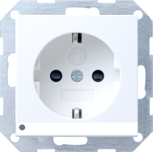 Gira Systeem 55 wandcontactdoos (wcd schakelmat.), wit, uitvoering contactdoos CEE 7/3 (type, aardcontact overig, met signaallamp, 1 eenheid, 1 modules (bij modulair sys, 2 fasen, aansluitwijze steekklem, met verhoogde aanraakbeveiliging, RAL-nummer 9010, met oriƫntatieverlichting