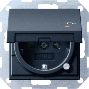 Gira Systeem 55 wandcontactdoos (wcd schakelmat.), zwart, uitvoering contactdoos CEE 7/3 (type, aardcontact overig, met signaallamp, 1 eenheid, 1 modules (bij modulair sys, 2 fasen, opdruk/indicatie overig, aansluitwijze steekklem, met klapdeksel, met verhoogde aanraakbeveiliging,
