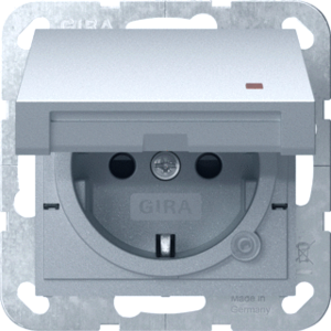 Gira Systeem 55 wandcontactdoos (wcd schakelmat.), aluminium, uitvoering contactdoos CEE 7/3 (type, aardcontact overig, met signaallamp, 1 eenheid, 1 modules (bij modulair sys, 2 fasen, opdruk/indicatie overig, aansluitwijze steekklem, met klapdeksel, met verhoogde aanraakbeveiliging,
