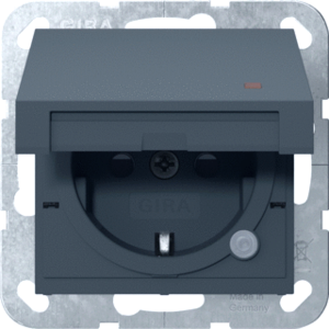 Gira Systeem 55 wandcontactdoos (wcd schakelmat.), antraciet, uitvoering contactdoos CEE 7/3 (type, aardcontact overig, met signaallamp, 1 eenheid, 1 modules (bij modulair sys, 2 fasen, opdruk/indicatie overig, aansluitwijze steekklem, met klapdeksel, met verhoogde aanraakbeveiliging,