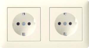 Gira Standaard 55 wandcontactdoos (wcd schakelmat.), wit, uitvoering contactdoos CEE 7/3 (type, aardcontact overig, 2 eenheden, 1 modules (bij modulair sys, 2 fasen, aansluitwijze steekklem, RAL-nummer 1013, geïsoleerde montage
